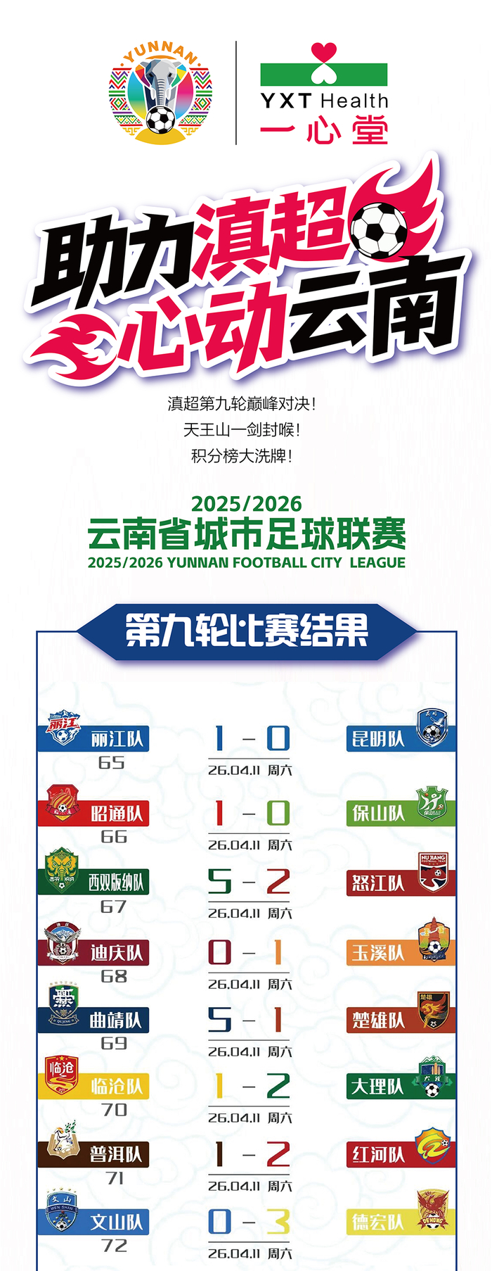 一心堂全程相伴滇超赛场,以专业贴心的健康服务,守护每一位球员的拼搏时刻,陪伴每一位球迷见证精彩瞬间,助力滇超,心动云南,为云南足球的每一份热爱喝彩!