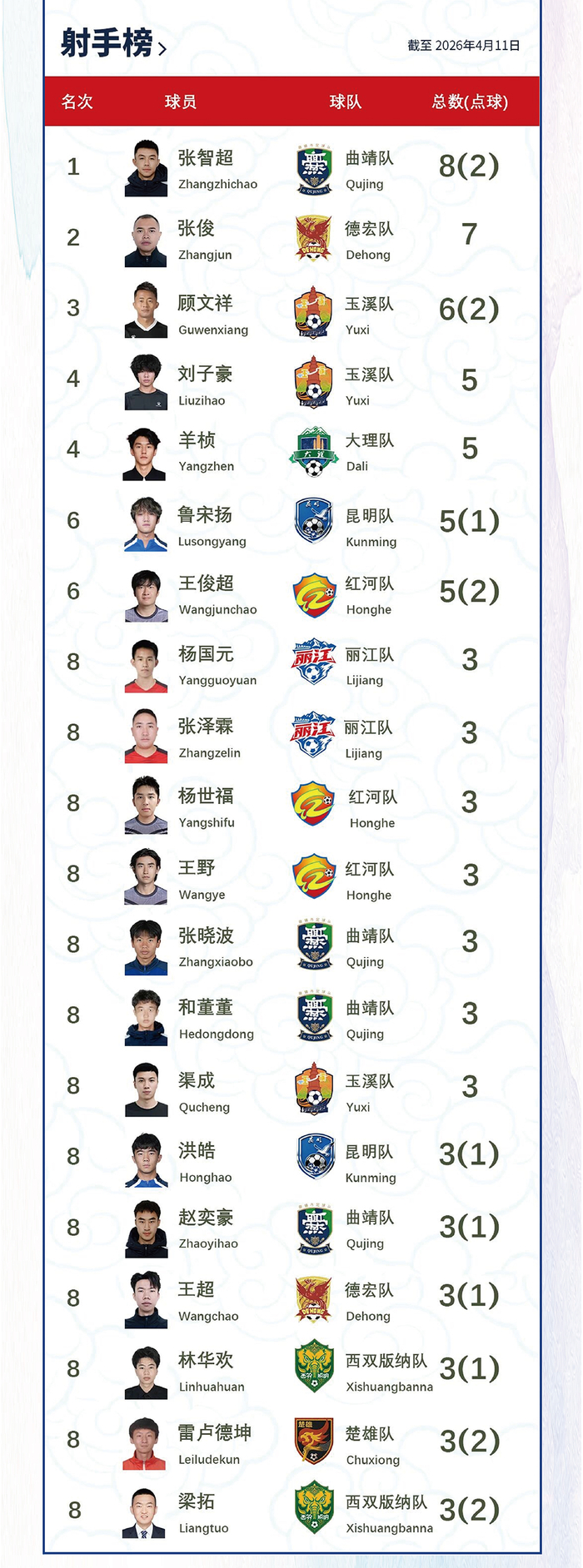 关乎前四席位的滇中德比,曲靖主场气势拉满,一开场就牢牢掌控局势。第22分钟和董董率先破门,第28分钟张智超扩大比分,随后楚雄队沈磊扳回一城,但张智超很快再次建功,上半场曲靖就以3-1确立领先优势。易边再战,曲靖攻势不减,第88分钟吕明浩破门,补时阶段张晓波锁定胜局,最终5-1大胜。楚雄错失反超前四的绝佳良机,曲靖则凭借这场大胜,稳稳守住了联赛第四的排名。